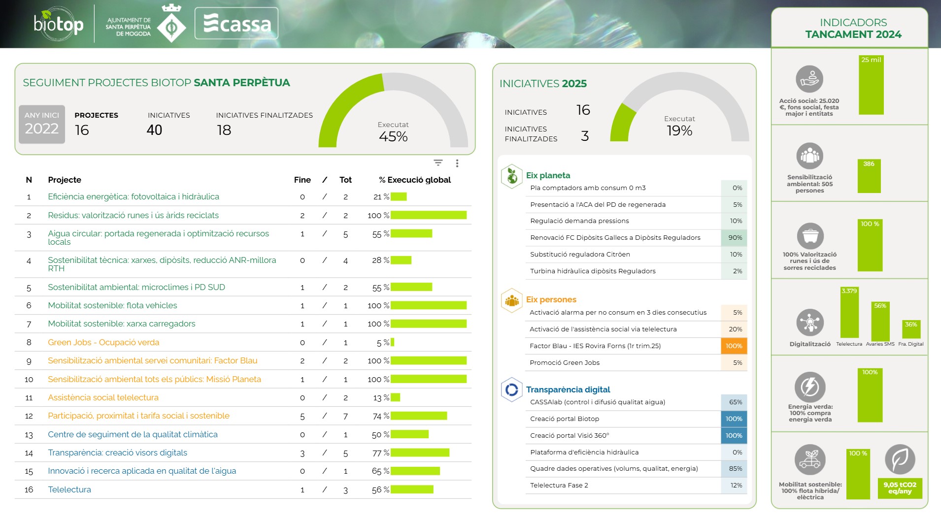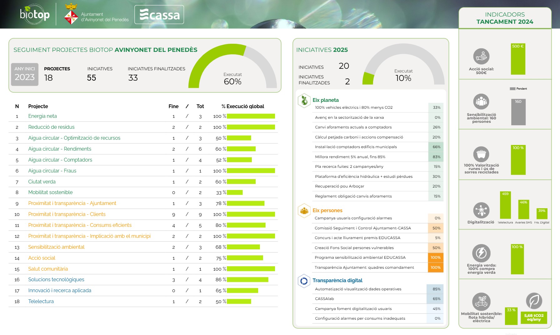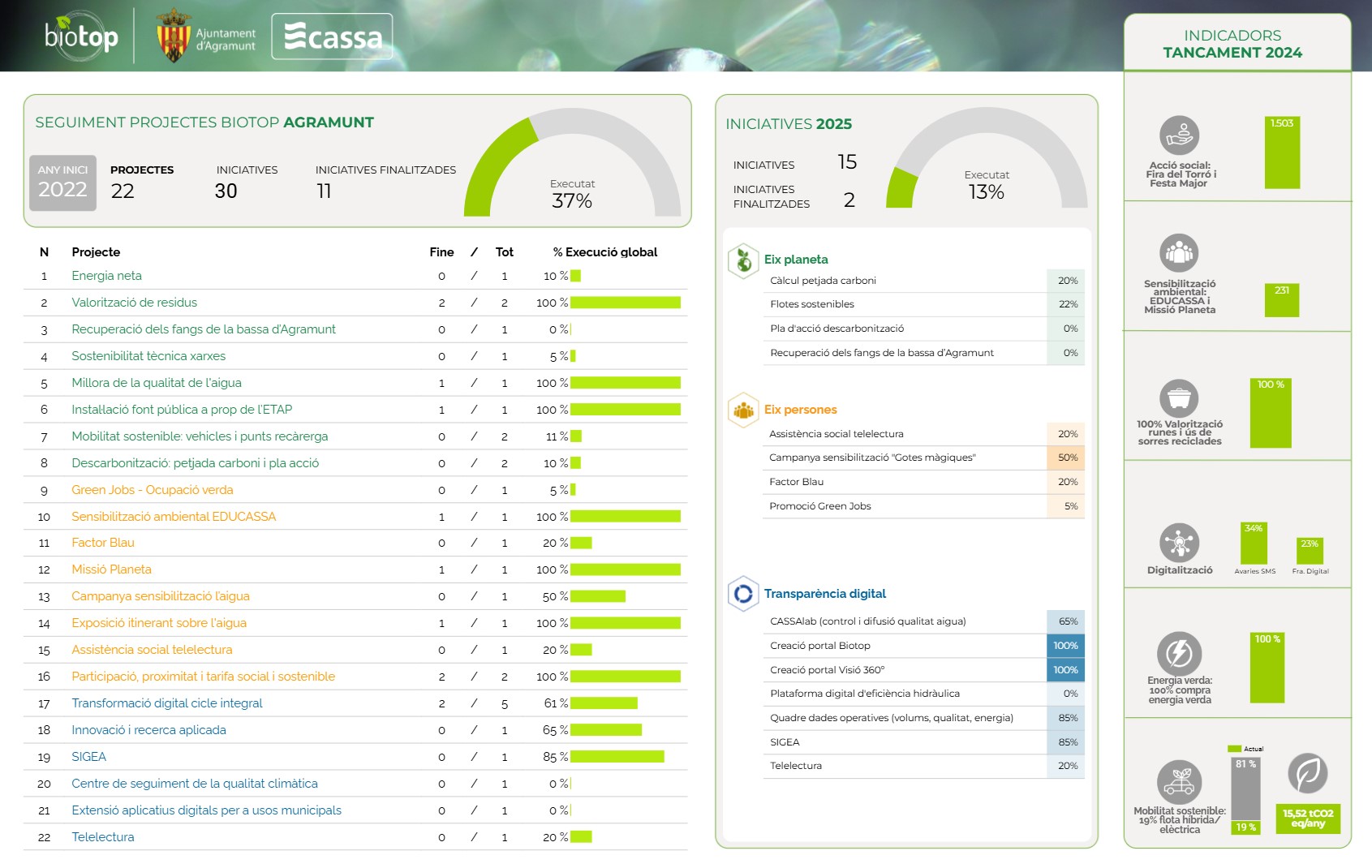Conjuntament amb els Ajuntaments, hem creat un quadre de comandament per poder fer un seguiment exhaustiu de l'avenç dels projectes, accions i objectius previstos: